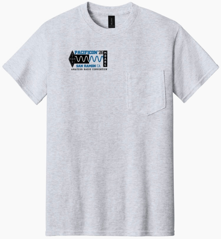 - Pacificon 2026 logo on Ash Gray Pocket T shirtÂ