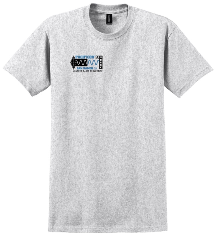 - Pacificon 2026 logo printed on Ash Gray short sleeve T shirt.