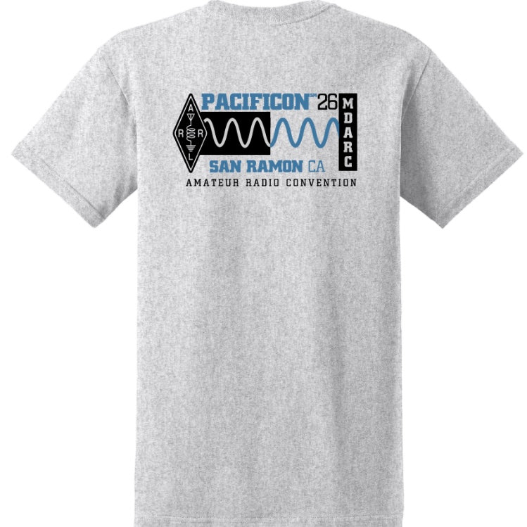 - Pacificon 2026 logo printed on ladies V neck short sleeve T shirt. This years shirt will have the more generous cut.